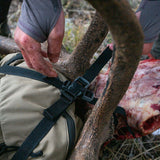 A Load-Shelf is integrated into all of our frames, allowing the user to expand the bag off the frame to pack gear or meat in between the bag and the frame. This eliminates the need to put meat inside the bag and keeps the heaviest of loads more stable and closer to your back for increased comfort.