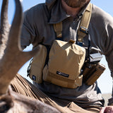 Patented OptikFit™ technology allows you to adjust the SKYLINE Bino Harness to your optics. Gone are the days of dealing with optics flopping and moving in your harness as you hike. Simply adjust the front hood height, shock cord tension system, and back panel height for a true custom fit.