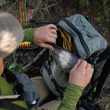 We have improved our best selling small capacity hunting pack by adding an integrated differential cut spotting scope pocket. This pack is the ideal minimalist multi-day pack that is the perfect combination of capability and versatility.