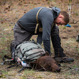 A Load-Shelf is integrated into all of our frames, allowing the user to expand the bag off the frame to pack gear or meat in between the bag and the frame. This eliminates the need to put meat inside the bag and keeps the heaviest of loads more stable and closer to your back for increased comfort.