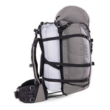 Hydrophobic foam, X-Pac fabric, Cordura 500d fabric and industrial hook and loop combine to provide a suspension with infinite adjustment and comfort. Using hook and loop for the shoulder harness attachment allows the user to not only dial in the exact height of the harness but change the angle each shoulder strap leaves the frame. The ultimate in adjustability and strength. The unique "X", carbon composite, four stay design transfers load evenly to the hip belt while offering optimum load lifter angles. The load is supported by 12 connection points to the frame via 1" webbing. Our frame systems have revolutionized the standard of pack frame comfort and fitting ability.